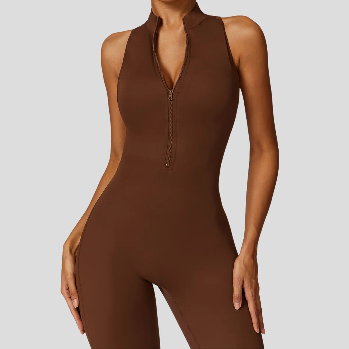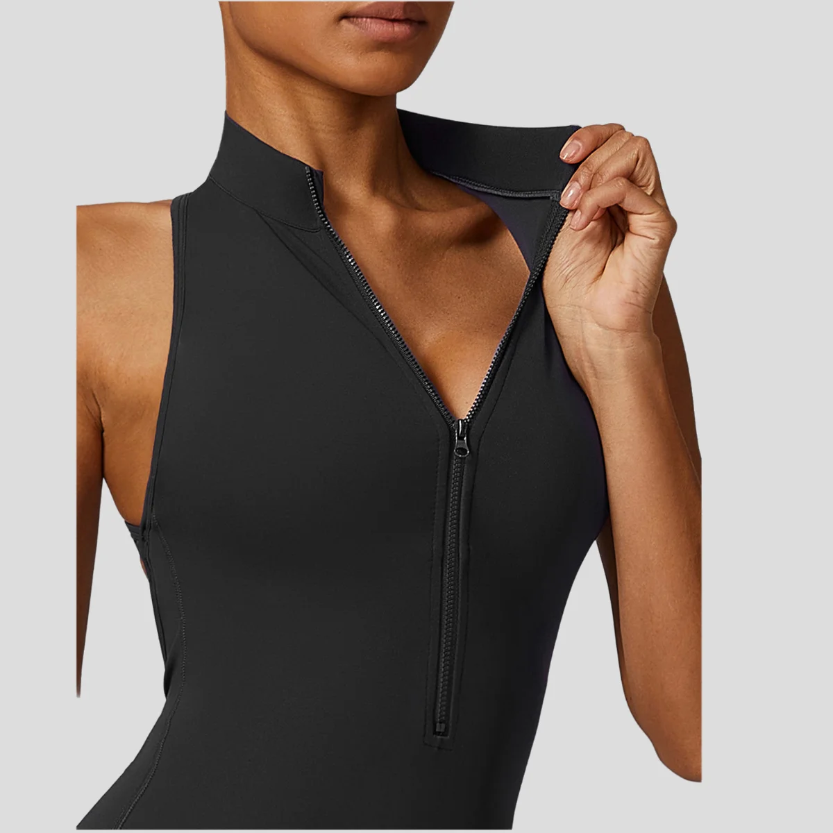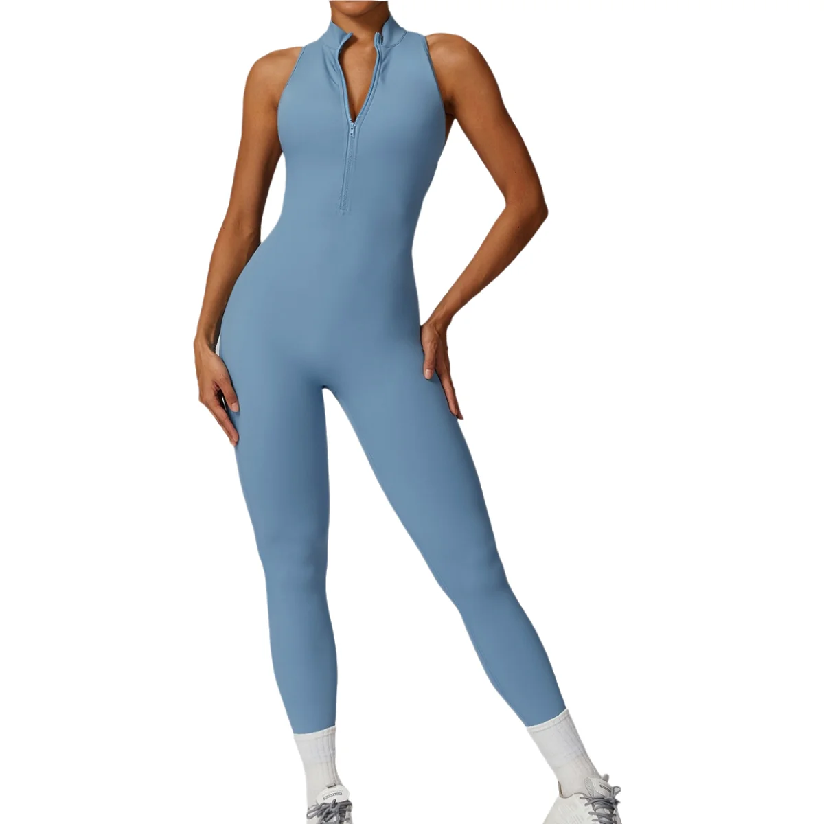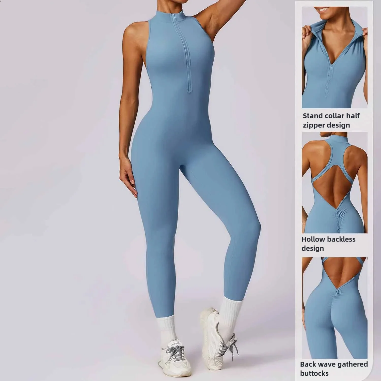 Hollow Back Stand Collar Half Zipper Sleeveless Sports Jumpsuit Outdoor Fitness Training Yoga Bodysuit